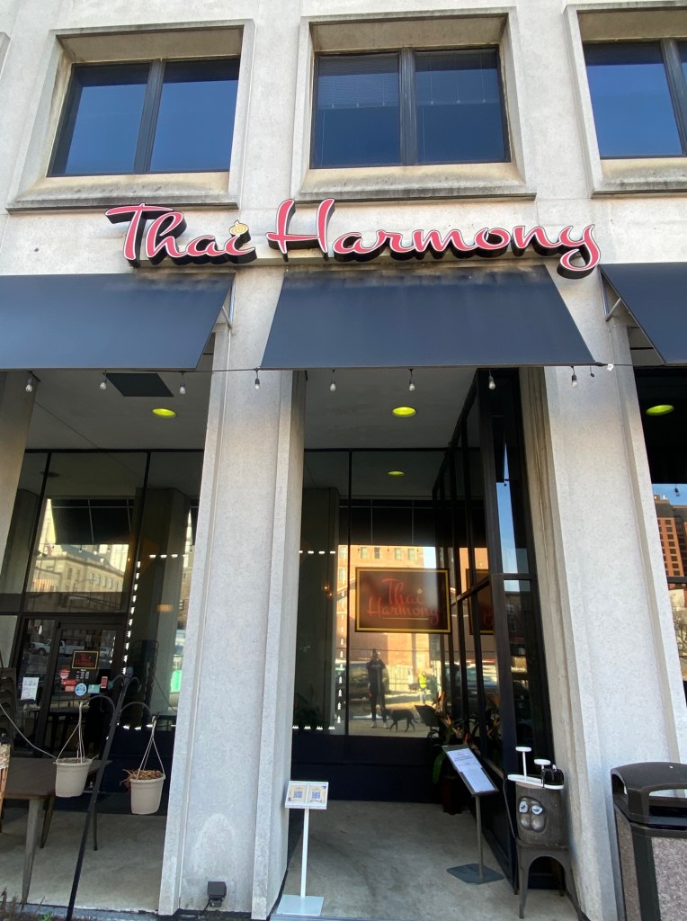 Thai Harmony is a great place to eat for lunch because the food is authenic as well as tasty and they have a very nice bar area with big screen TV’s. Pretty much everything is good on the menu but the popular items are the red curry, sushi, pad Thai chicken, crab fried rice and the Thai tea.
