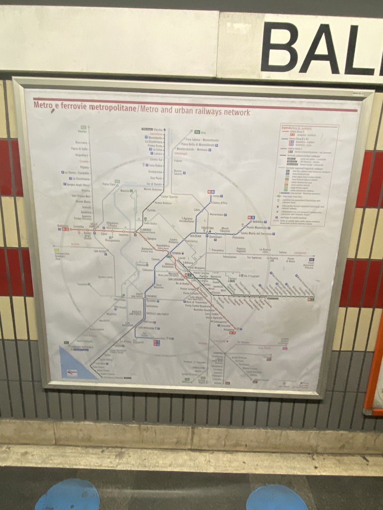 Let me just say, that our host Antonio was awesome and so was his sister. As soon as we got there, he told us where to go, places to see, modes of transportation and of course where to eat! Oh yes, the name of the B&B is Authentic Sweet Home and you can book your stay here through booking.com via this link https://booking.tp.st/DhP1Tg7Y. The location is great because it is near everything including the metro rail. It is 20 meters from the “Aura” Shopping center (about 2-3 blocks from the B&B) and the Line A Metro station (the “Baldo degli Ubaldi” stop). We rode the metro daily as well as walked. That was basically our two main modes of traveling. Rome is a very walkable city and you will walk a lot! I believe we averaged around 20,000 to 30,000 steps a day!