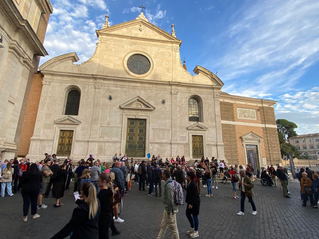 While we were eating I asked the owner where we should go first and she told us to take the metro and get on the A line and head to Piazza del Popolo. She mentioned it was her favorite place to go every week. We thanked her and were on our way to Piazza del Popolo. For one way the cost of getting there was 1.50 euros. The best part of their metro system is that you can just use apple pay and tap the sensor with your phone and bam you are in there.