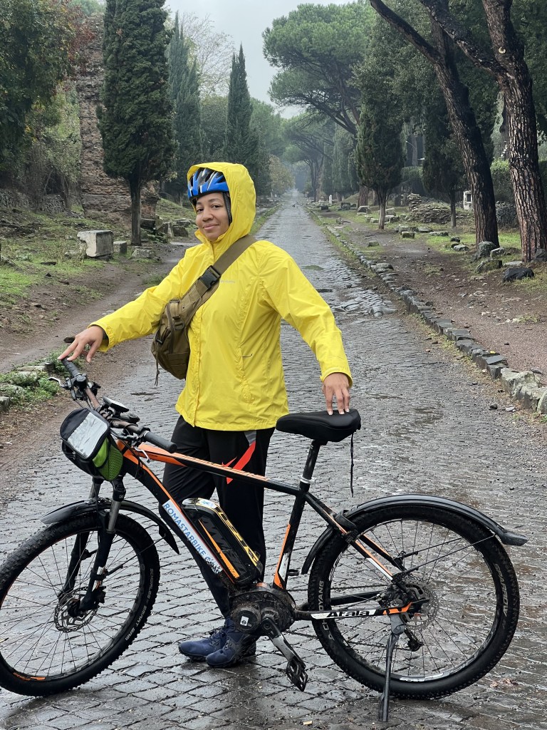 My second day in Rome, Italy began with my brother and I E-biking for 4 hours throughout the city. The highlight of the e-bike tour was us actually riding our bikes on the Appian Way. You may be wondering what makes the Appian Way so special? It was the primary road used by Romans in order to transport military supplies in its pursuit of southern Italy around 312 BC. To me what makes it extra special is that the road is made of stone pebbles and those same stone pebbles on the road are still being used in present day Rome.