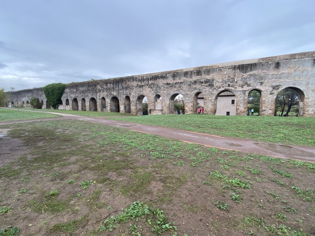 We booked our e-bike excursion through Viator and you can also by clicking on this link https://viator.tp.st/VeQ7DCht. Get Your Guide is also a great option for booking guided tours https://getyourguide.tp.st/gejY1d8J. After riding through the Appian Way we rode through the Roman Aqueducts. The aqueducts were how the Romans used to purify and distribute water to its citizens.