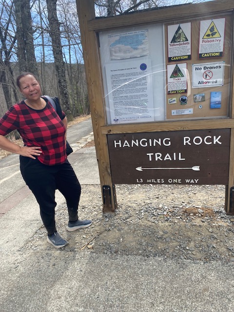 Hanging Rock State Park is by far, one of my favorite places to visit for outdoor activities! It has trails, a man-made beach, a lake, a river, numerous waterfalls and plenty of room for hiking, biking, horseback riding and rock climbing to name a few. This time go’ round I decided to only do the Hanging Rock Trail, which has changed since the last time that I was here. The trail used to be 1.3 miles going one way and a round-trip total of 2.6 miles; with the difficulty of the trail being moderate. Currently, the trail has changed to about 1.8 miles going one way and a round-trip total of around 4 miles; with the difficulty of the trail being easy.