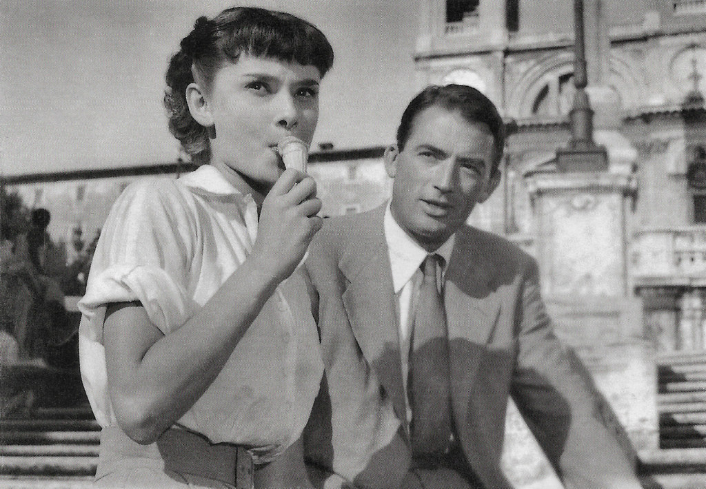 The Spanish Steps with Katherine Hepburn & Gregory Peck in Roman Holiday (1953). Image Credit: Flickriver, some rights reserved, no changes were made, Audrey Hepburn and Gregory Peck in Roman Holiday (1953) – a photo on Flickriver