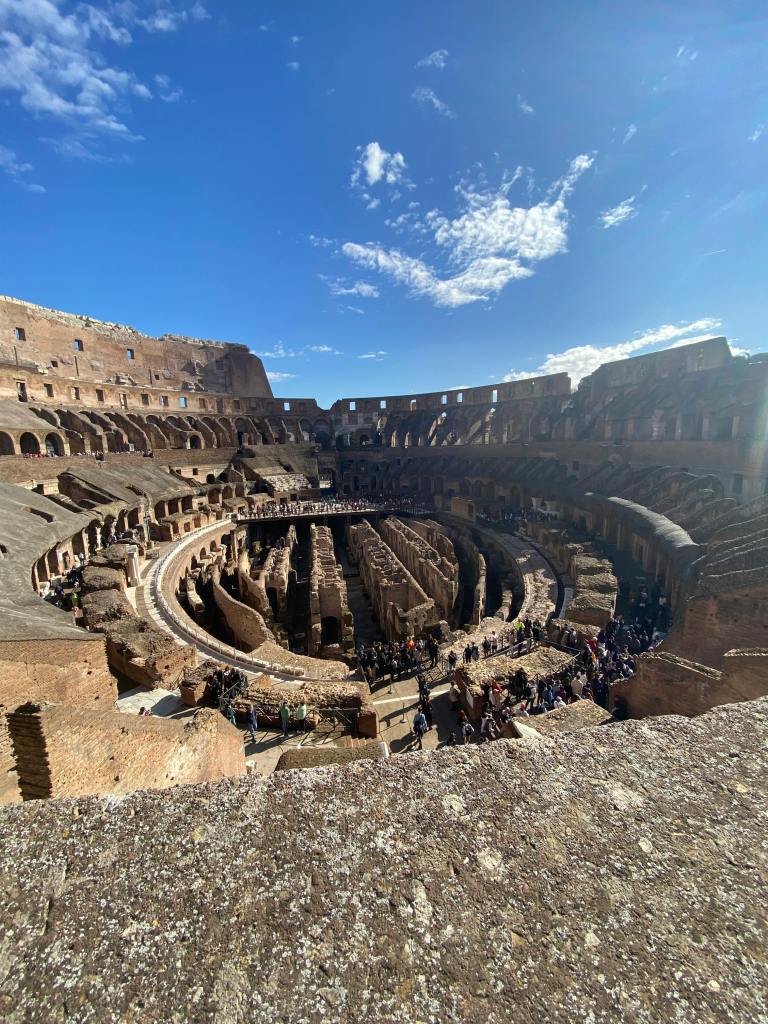 - The Colosseum– You MUST see the Colosseum because it is one of the Seven Wonders of the World. The Colosseum is a huge Ampitheater that was used for Gladiator contests. It is Free to see the outside, but it cost 18 Euros to go in the inside. My brother and I used Viator to skip the line. Trust me you will want a skip the line ticket! Use this link to book your ticket: https://viator.tp.st/VeQ7DCht