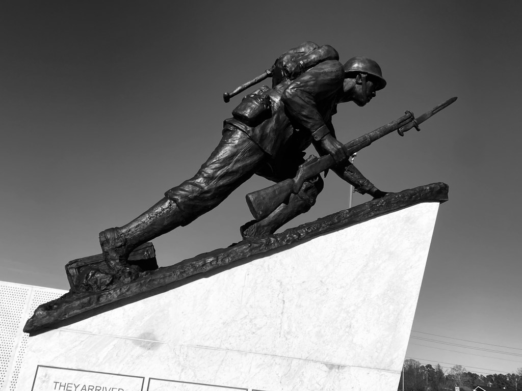 Hello everyone! Today I will be honoring Montford Point Marines! Back in January of this year, I actually visited the Montford Point Marine Memorial in Jacksonville, North Carolina. I had no idea whatsoever what the memorial itself was about. Upon arriving, I saw other memorials, but I didn’t see the Montford Point Marine Memorial. I kept walking after a few minutes or so and I see this statue of this Marine charging forward with a service rifle.