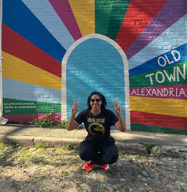 We decided that we wanted to take some pictures of some murals and also with us in them! I have to say that it was quite a blast! The first one was the Old Town Alexandria Mural, also known as the Rainbow Mural, which is quite colorful!